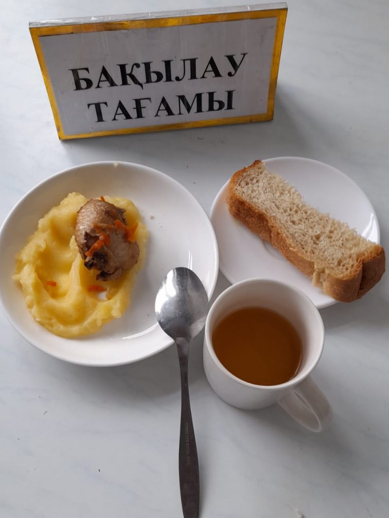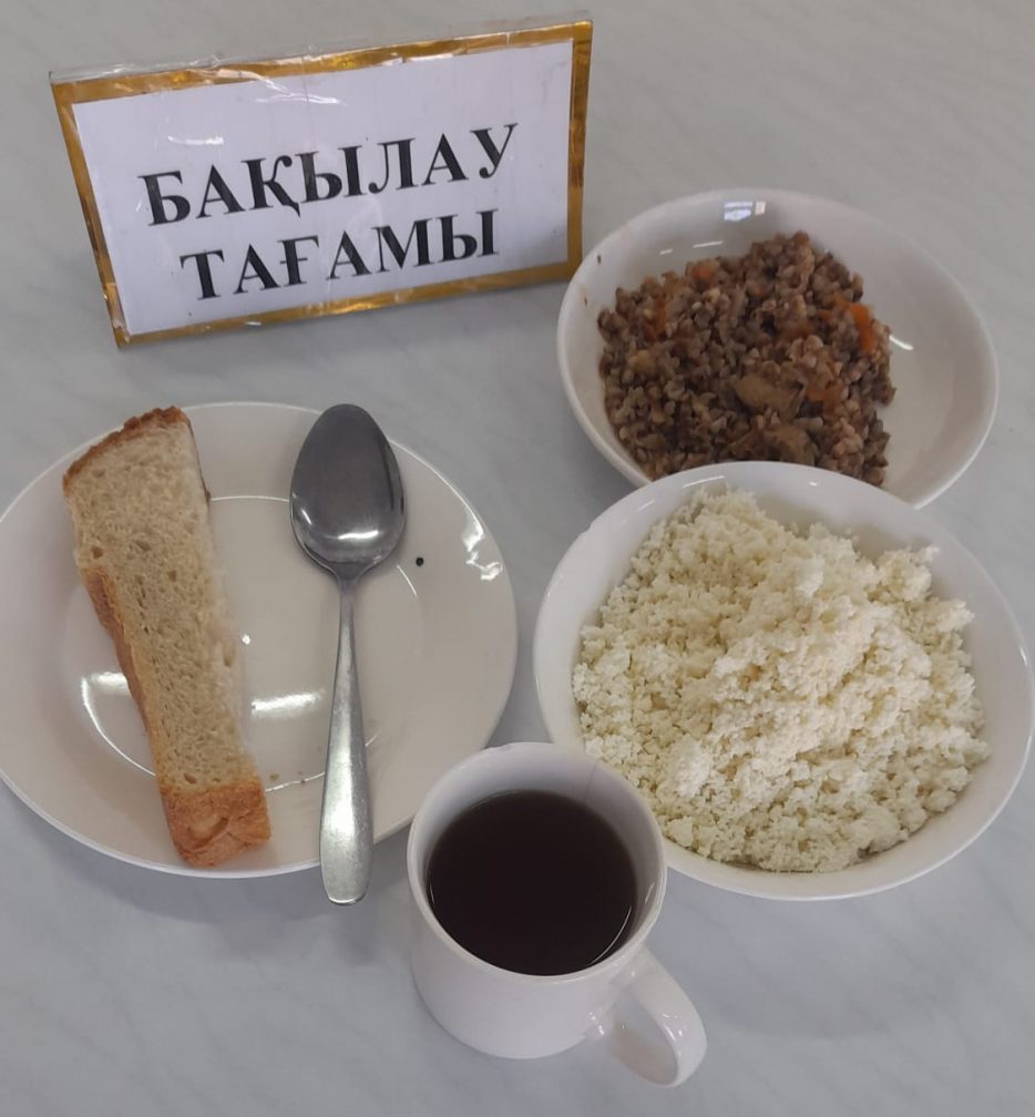 26 ақпан 2025 жыл Ас мәзірі: 1.Қарақұмық қосылған сиыр гуляшы 2.Нан 3.Қант қосылған шай 4.Сүзбе