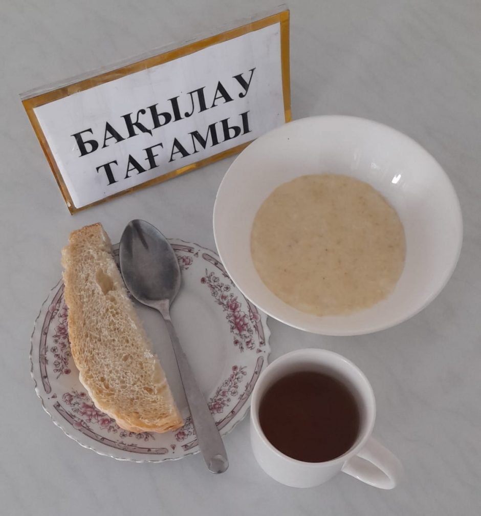 24 ақпан 2025 жыл Ас мәзірі: 1.Тары сүт ботқасы 2.Нан 3.Лимон мен қант қосылған шай 4.Сары май, ірімшік 5.Бал
