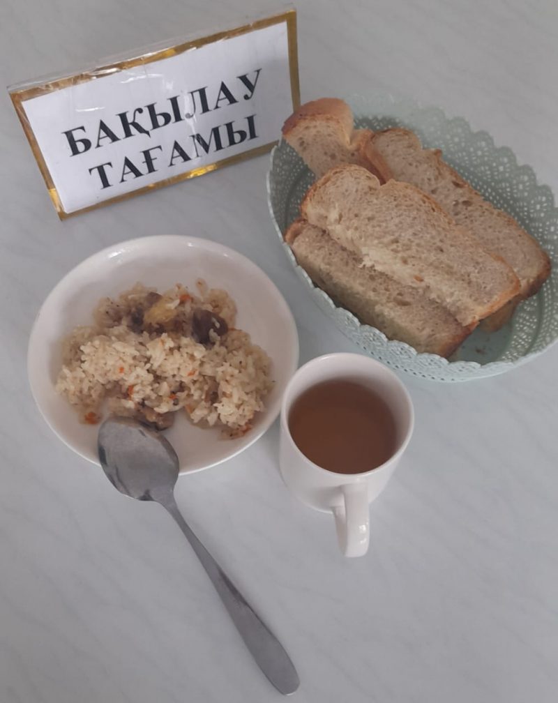 15.04. 2025 жыл Ас мәзірі:1.Сиыр етінің палауы 2.Нан 3.Кисель.